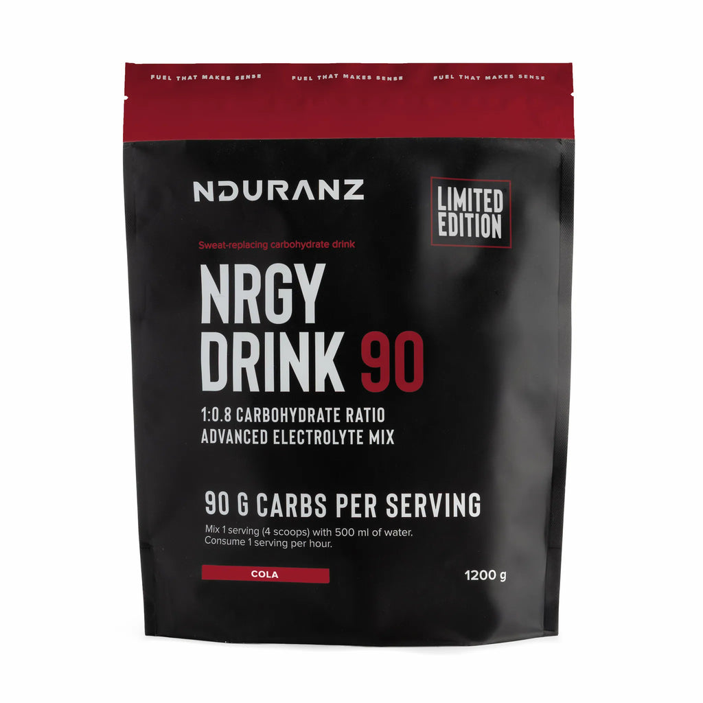 Choose the Nrgy Drink 90 in situations where you want a lower amount of electrolytes compared to carbohydrates, such as cooler temperatures where you will sweat less.